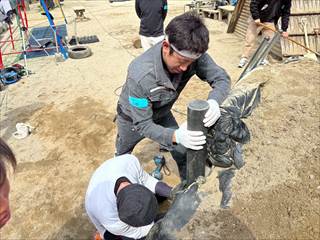 力を合わせてできたあつあつの豚汁はと~ってもおいしかったですよ!幼児クラスは園庭で食べました★
