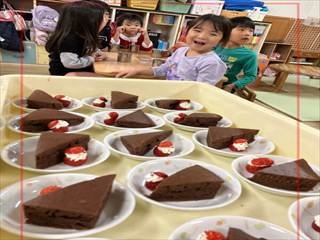 給食はもちろん、クリスマスならではのチキンの丸焼きとハンバーグ、おやつはかわいいサンタが乗っているブラウニーで、こちらもまたまた大喜びの西野山っ子たちでした🎄