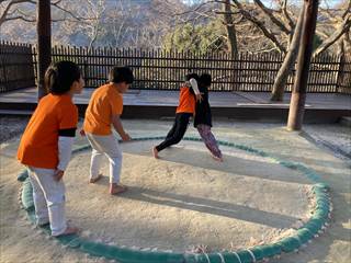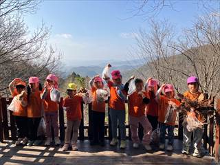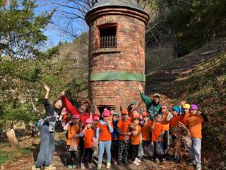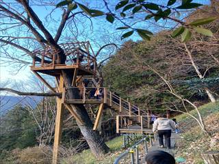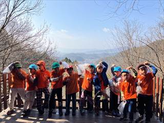 八瀬野外保育センターでは、山を探検して見晴らし台やツリーハウスからヤッホーと叫んだり、