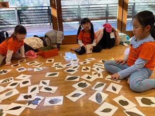葉っぱや木の実を集めてフォトフレーム工作をしたりしました。おすもう大会や鬼ごっこも満喫!