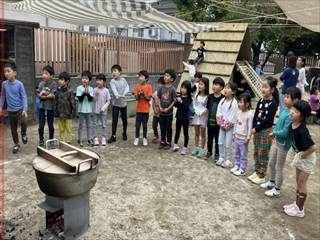力を合わせてできたあつあつの豚汁はと~ってもおいしかったですよ!幼児クラスは園庭で食べました★